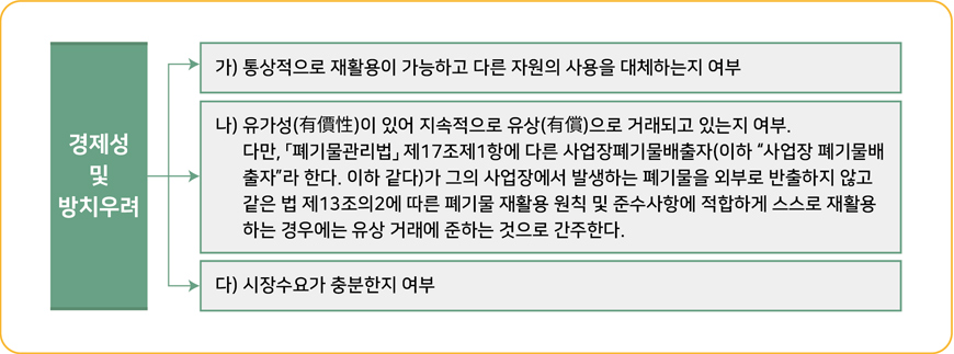 2) 경제성이 있어 유상 거래가 가능하고 방치될 우려가 없을 것