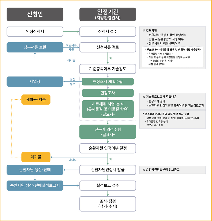 순환자원으로 인정받기 위해서는 법령상 인정기준을 모두 충족해야 합니다.