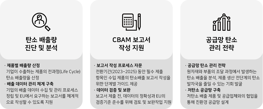 - EU CBAM 전환기간 동안 제출해야 할 탄소 배출 보고서를 준비하고, 제출 전 완성도를 높이기 위한 검토 과정을 진행합니다.